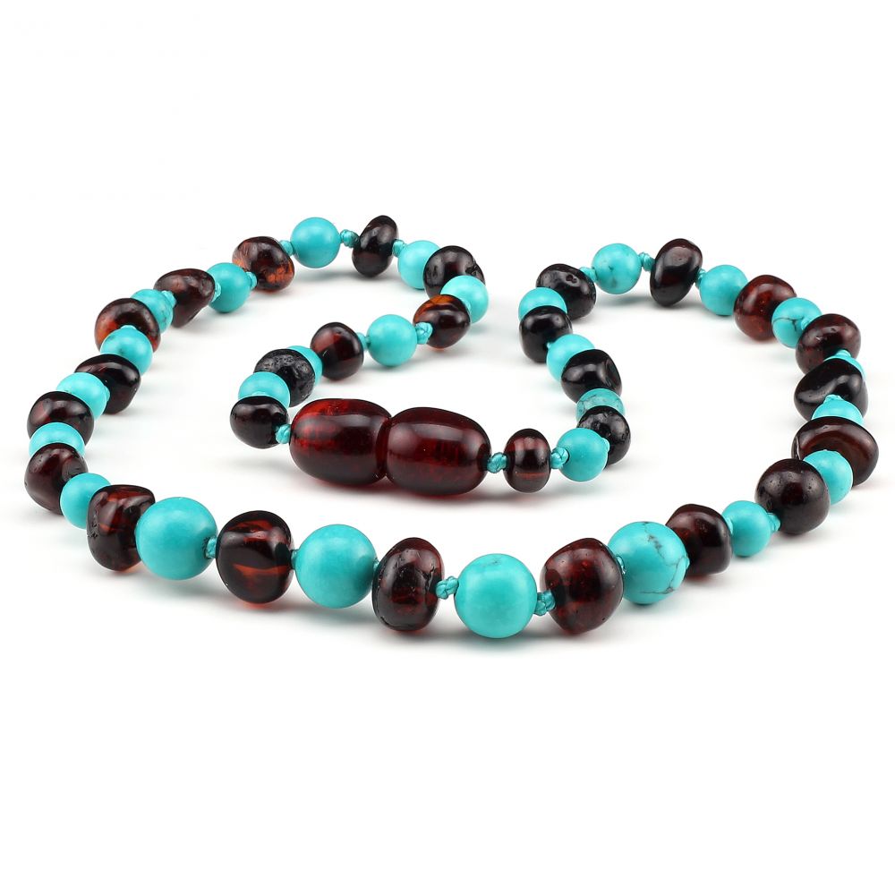 Baltic amber teething necklace with turquoise 32cm (12.5 inches)
